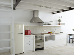 The complex was designed and operated in the past for the production of wine and tsipouro. The basic spatial organization of the buildings were based on the production and storage of wine. Specifically, the basic organizational type is made up of spaces for stepping on the grapes that are attached next to a large double height space where the wine is stored in barrels. This basic spatial organization is repeated throughout the complex while achieving spatial differentiation and variation. Vaulted spaces of various sizes and uses are organized into two basic building volumes. Some spaces are cave like (yposkafoi) and hide their form and some are expressed as cubic volumes. The masonry construction determines the form and size of the spaces as well as the way they relate spatially. Domes, arches, thick walls, small windows compose the distinguished vernacular complex geometry and form of the buildings. The typological unit which makes up the fabric of Pyrgos is evident in the strict spatial organization of the complex with its protected courtyard and the various spaces built around it, allowing an almost “theatrical” reading of the space while creating a sense of increased privacy and introversion. The morphology, the overall vernacular architecture of the buildings and the almost unobstructed views of the site creates a challenging place to work on and compose an overall spatial experience for vacation living with a unique combination of vernacular (local) and contemporary characteristics. The whole renovation effort was based on the notion of “inserting” a new use (vacation housing) in the old structure while maintaining the spatial qualities of the original architecture. Emphasis was given in the use of local material and techniques in most of the finishes while creating furniture and architectural details that are informed by the simple and clear forms of the vernacular building methods.